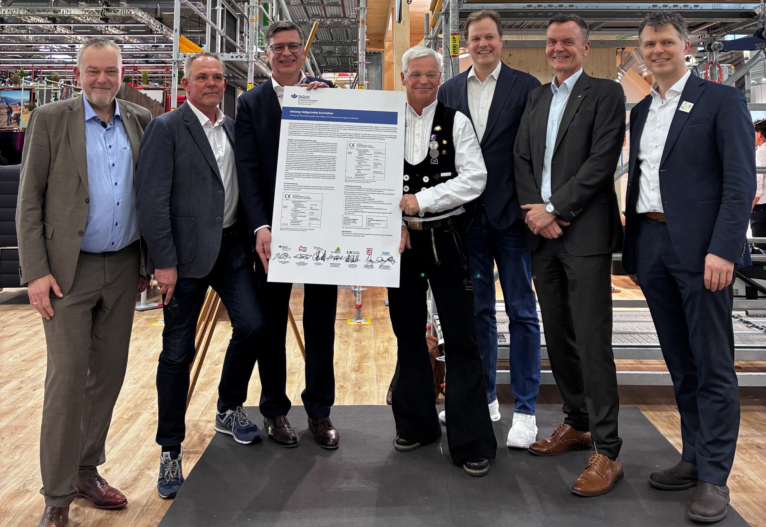 Der neue Anhang ergänzt die „Vereinbarung über Dachlatten mit CE-Kennzeichnung aus Nadelholz“ vom 8. Juli 2022 und tritt am 25. Februar 2026 in Kraft. Er wird vom Fachbereich Bauwesen der DGUV sowie den unterzeichnenden Verbänden Zentralverband des Deutschen Dachdeckerhandwerks (ZVDH), Holzbau Deutschland – Bund Deutscher Zimmermeister im Zentralverband des Deutschen Baugewerbes (ZDB), Gesamtverband Deutscher Holzhandel (GD Holz), Hauptverband der Deutschen Holzindustrie (HDH), Bundesverband Deutscher Fertigbau (BDF) sowie Deutsche Säge- und Holzindustrie Bundesverband (DeSH) getragen.