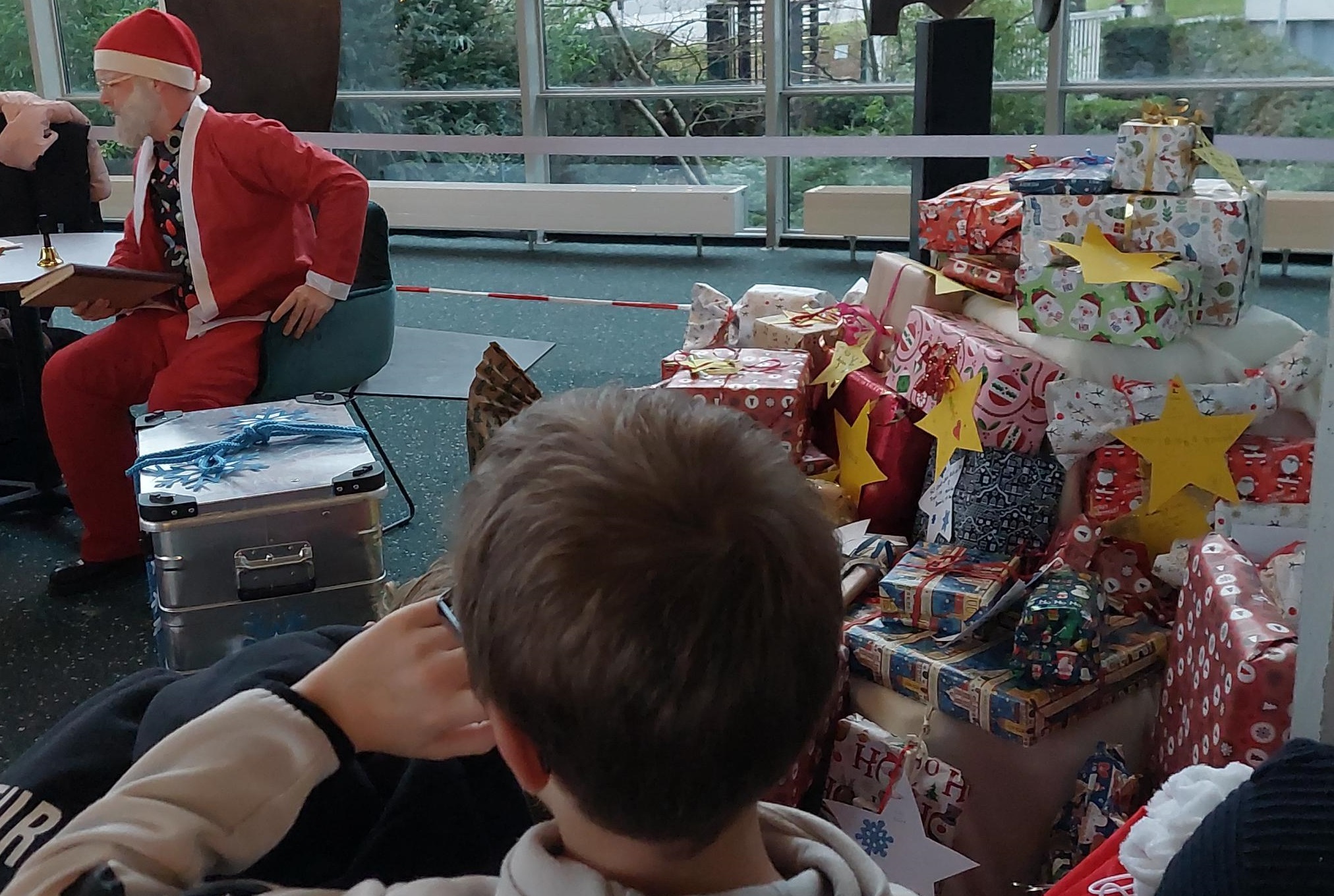 Bildtext Im Foyer des E/D/E überreichte der Weihnachtsmann die Geschenke.